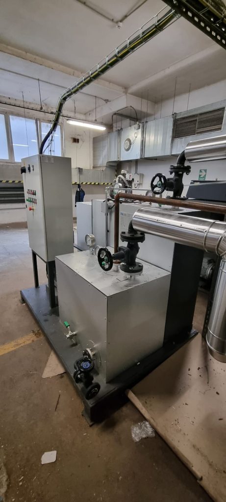 Dodávka a instalace parního vyvíječe A.M.C.E. 150 s dvoustupňovým plynovým hořákem MAXGAS 170 PAB. Součástí…
