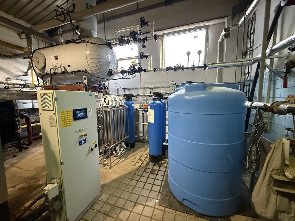 Součástí dodávky byla i reverzní osmóza včetně zásobní nádrže, duplexního změkčovače a aktivního uhlí. Veškeré odpadní vody z kotle se vychlazují ve vychlazovací nádrži.