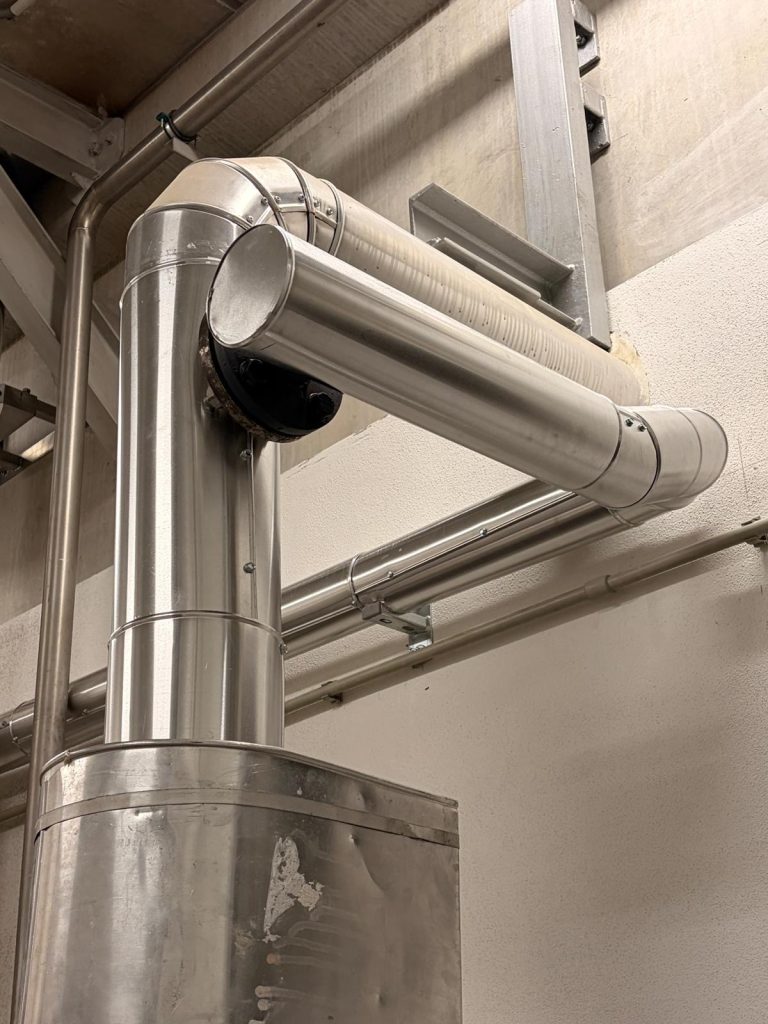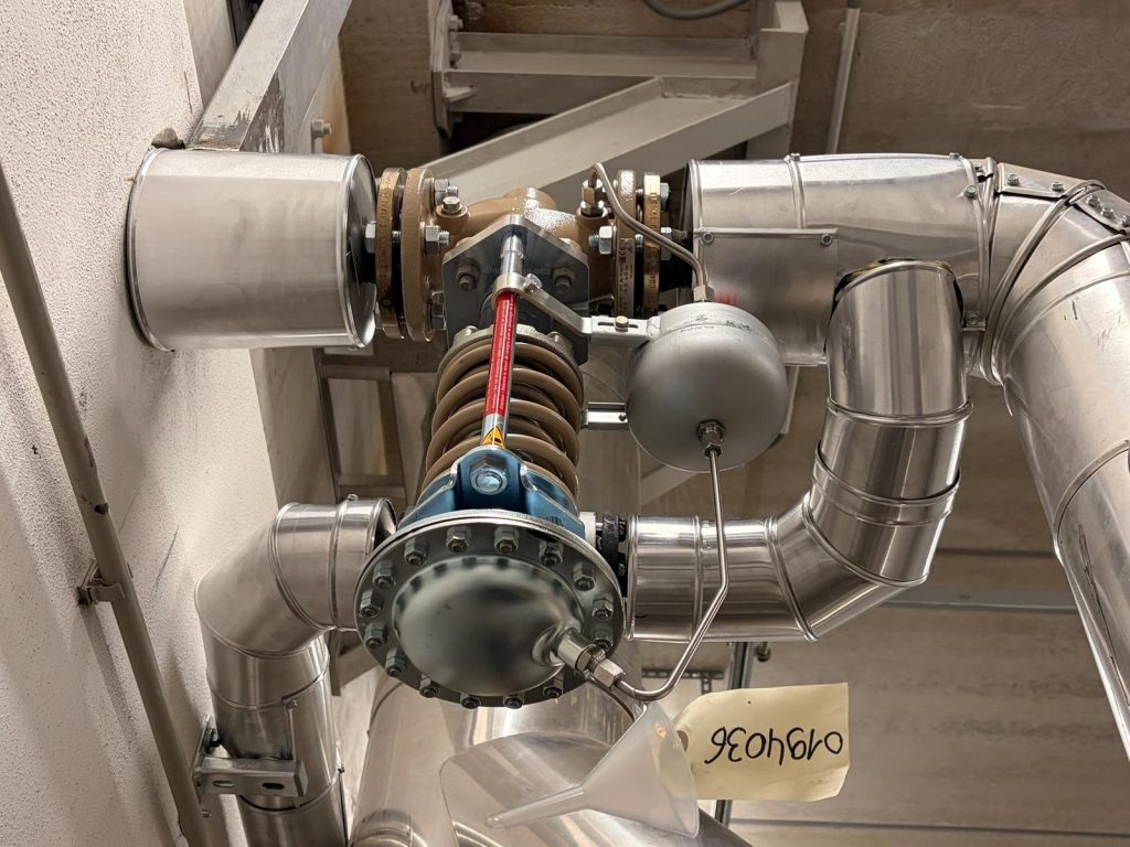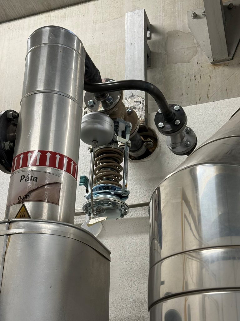 V rámci realizace byl do parního systému instalován ventil zpětného tlaku v kombinaci s odvaděčem koncentrátu. Toto řešení zajišťuje ochranu vyvíječe proti přetížení při nestandardních tlakových poměrech. Ventil je nastaven tak, že při poklesu tlaku páry pod hodnotu 4 bar dojde k jeho automatickému uzavření, čímž se zabrání provozu zařízení v nevyhovujících podmínkách a minimalizuje se riziko tepelného přetížení výměníkové části.