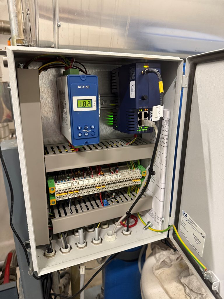Pro účely vzdáleného monitoringu byl do řídicího systému integrován komunikační modul Ewon Flexy, který zajišťuje bezpečný přenos provozních dat výrobci zařízení. Tím je umožněno průběžné sledování provozních parametrů, diagnostika stavů a včasná identifikace odchylek.